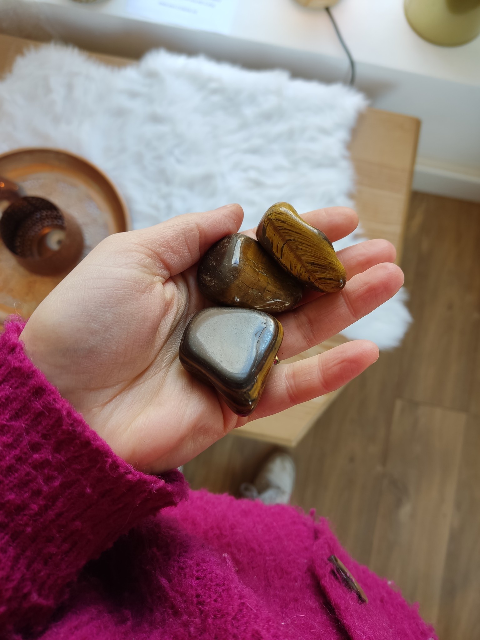 Heel vaak kiezen kinderen de tijgeroog steen. Deze helpt bij angsten, om steviger te staan.